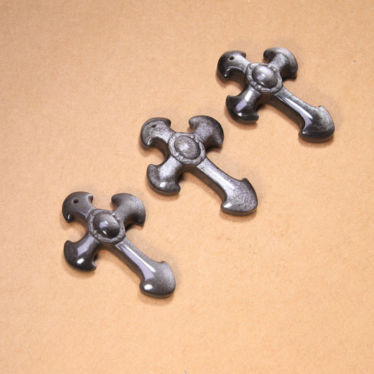 Natural Stone Silver Obsidian Cross Pendant