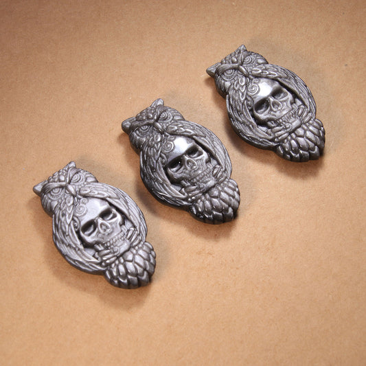 Natural Stone Silver Skull Owls Pendant