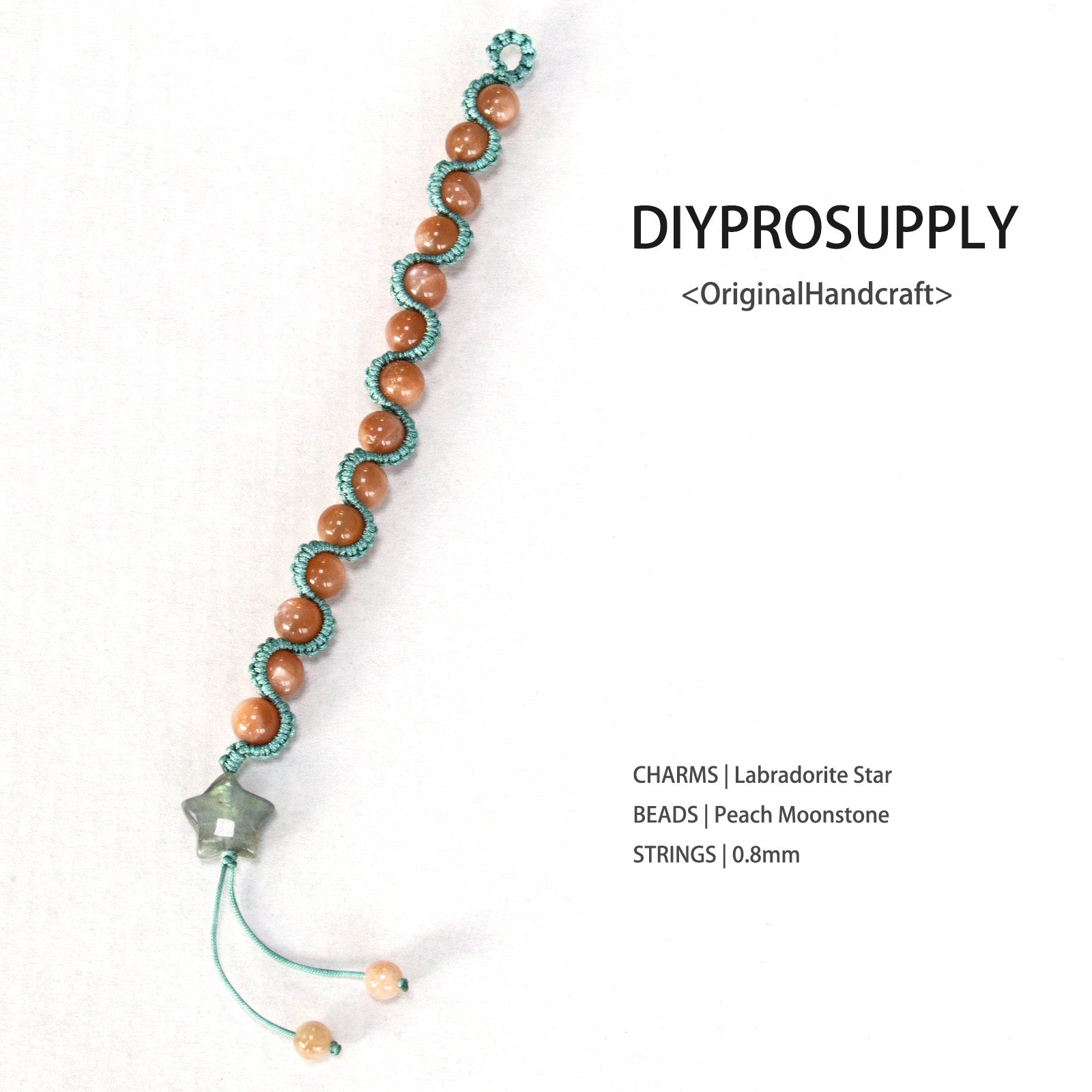 Luminous peach moonstone beads + 0.8mm macramé cord + labradorite star charm