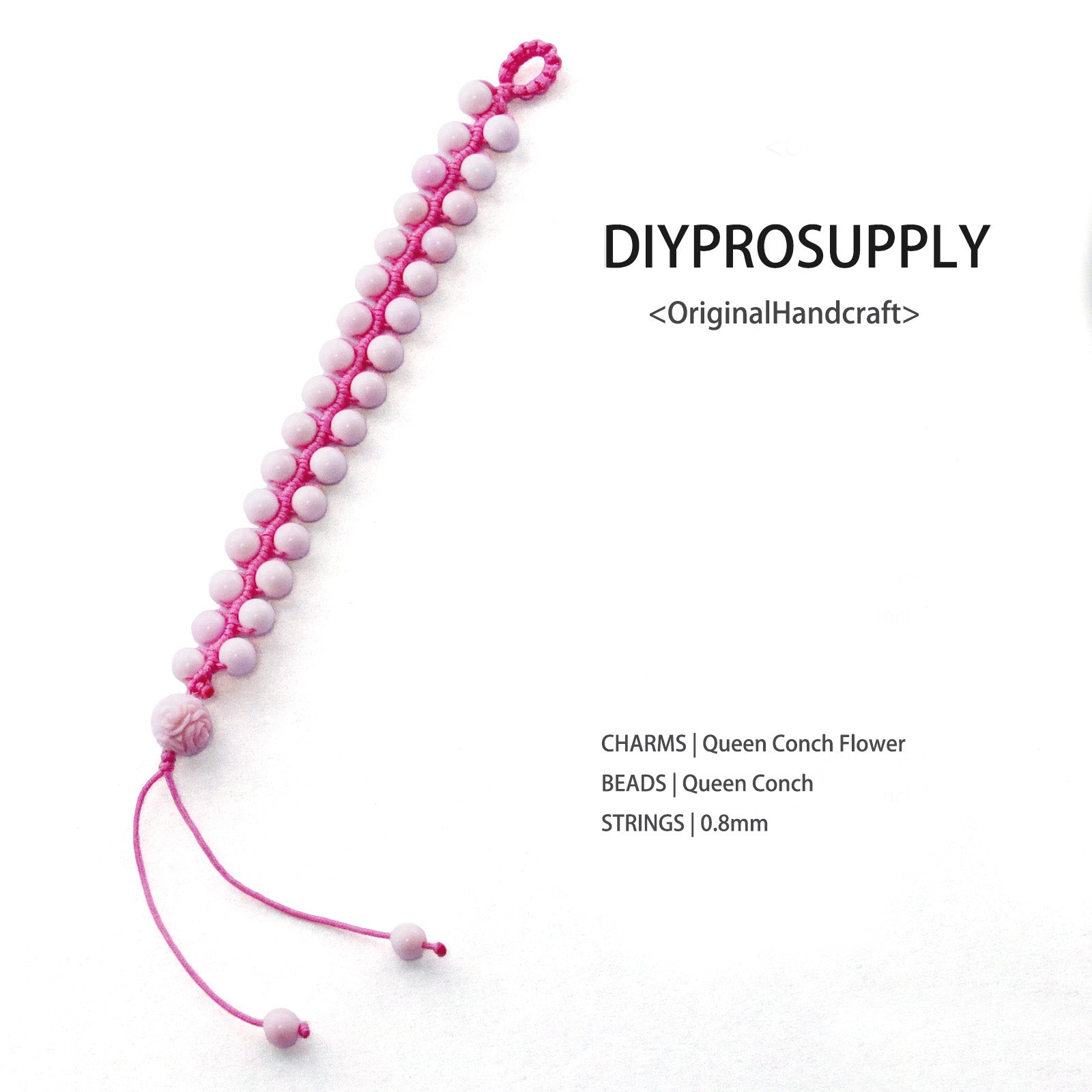 Soft pink queen conch beads + 0.8mm macramé cord + matching flower charm